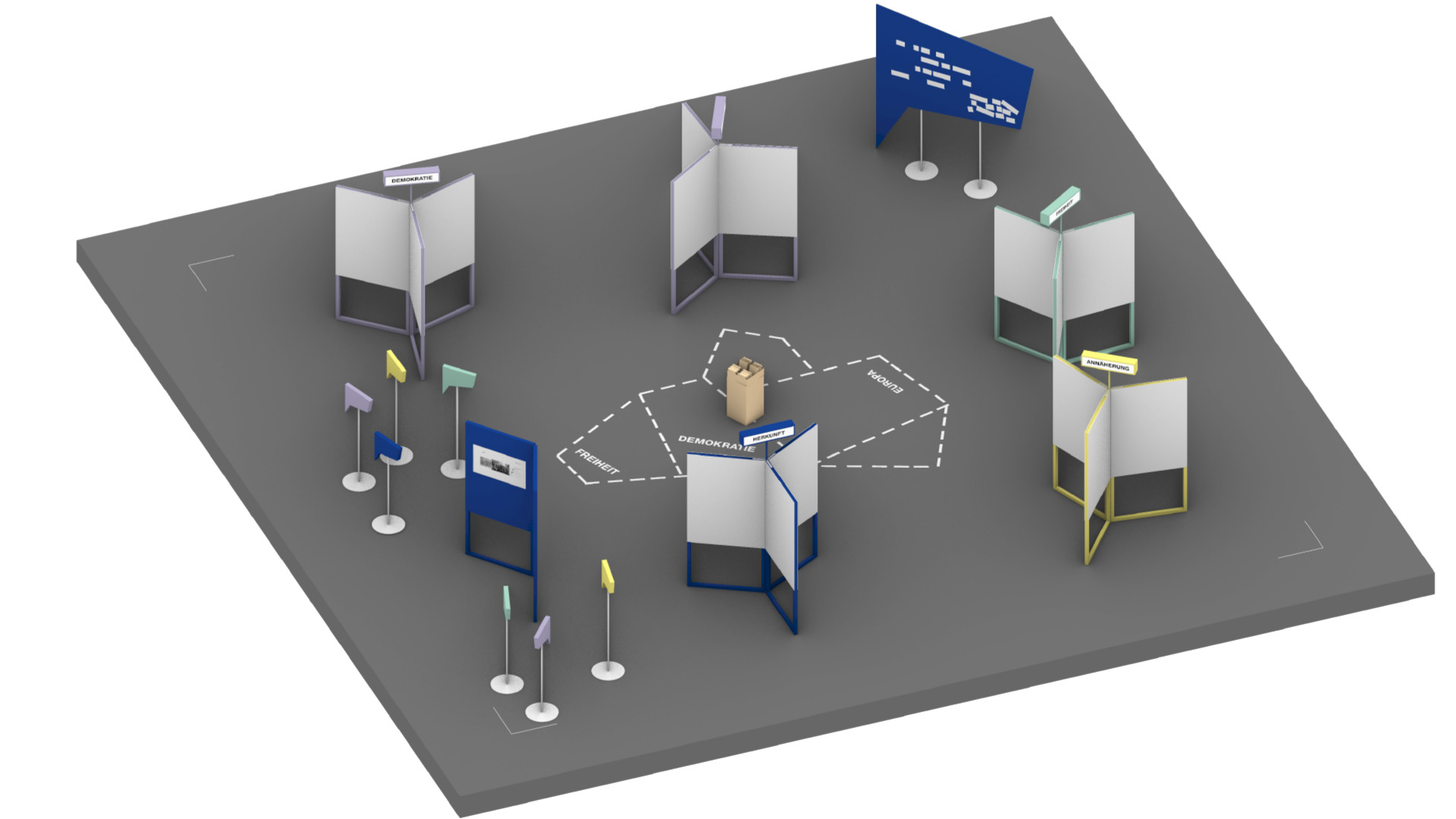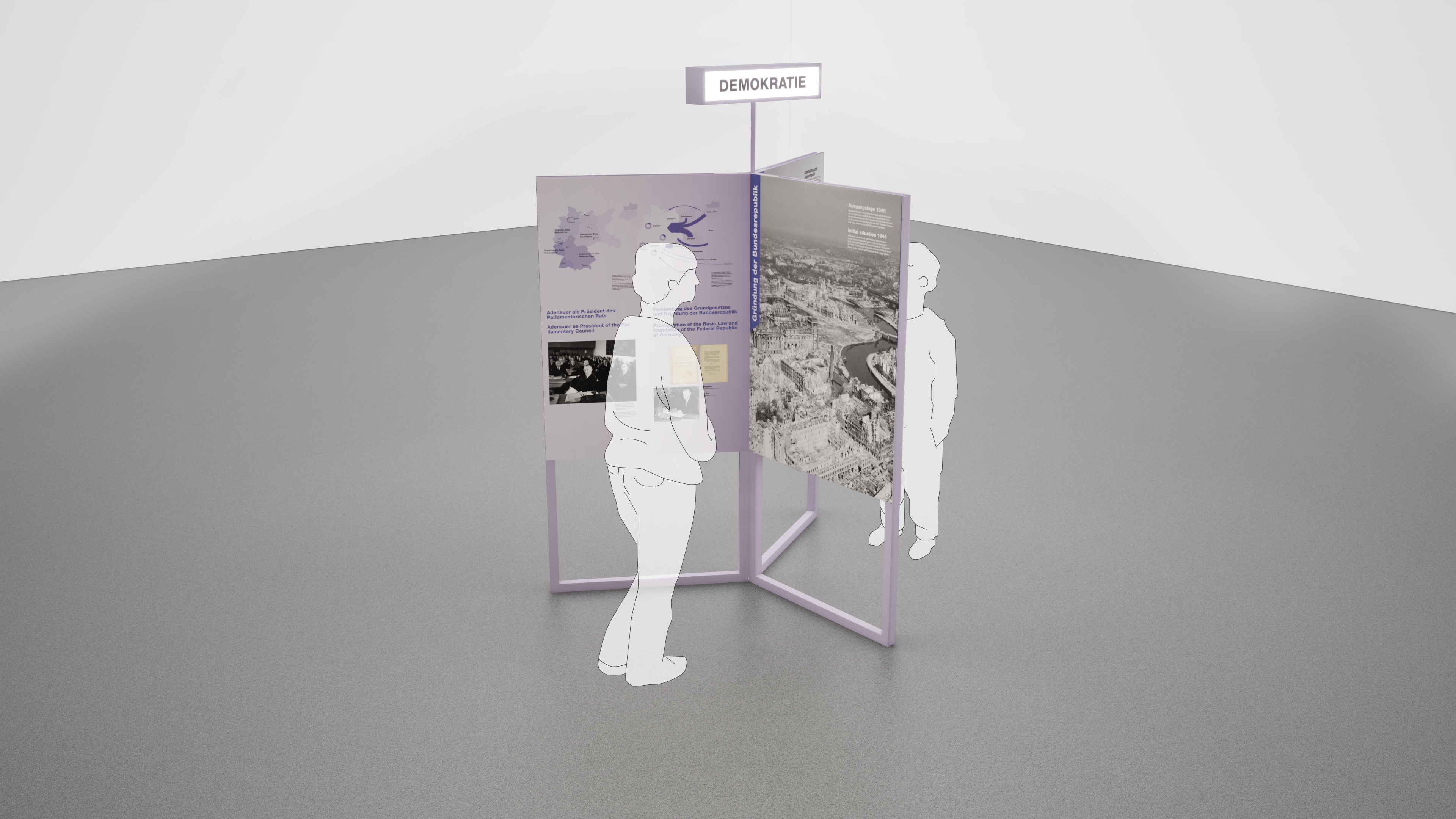 Februar 2025 / Zum 100. Geburtstag von Konrad Adenauer haben wir an einem Wettbewerb für eine Wanderausstellung teilgenommen. Unser Konzept setzt auf Modularität und einfachen Aufbau, um Flexibilität und effiziente Logistik im Ausstellungsdesign zu demonstrieren. Die Module ermöglichen eine schnelle Anpassung an unterschiedliche Räumlichkeiten und machen das Wirken Adenauers an verschiedenen Orten erlebbar. Ein Ansatz, der Design, Funktionalität und Mobilität vereint – und Geschichte in Bewegung hält.