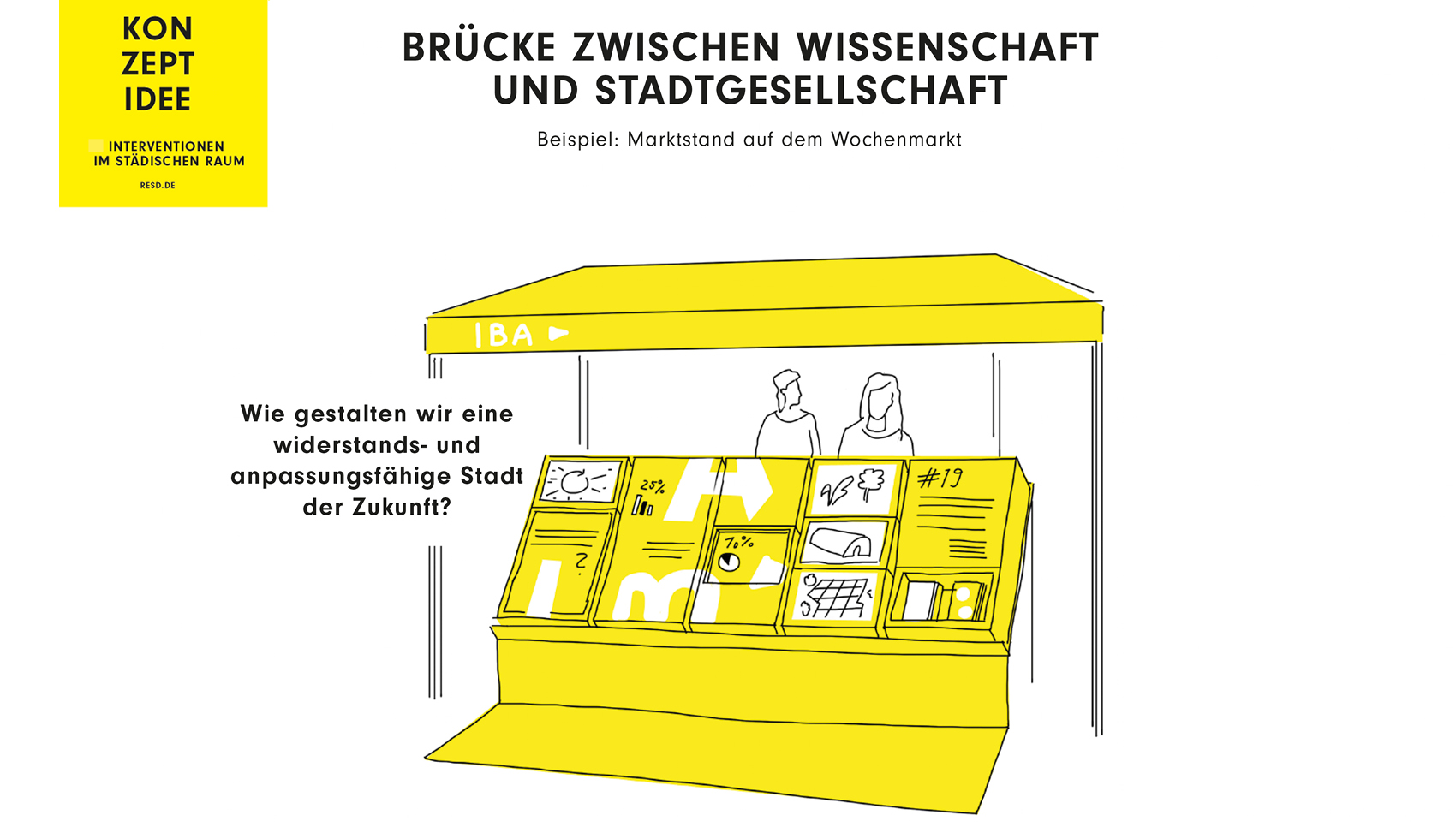 Unter dem Leitthema »Wissen schafft Stadt« ist die Internationale Bauausstellung (IBA) Heidelberg bis 2022 in der Stadt präsent. Die Abschlusspräsentation stellt die entstandenen Projkekte und Prozesse unter einbeziehung der Öffentlichkeit vor. res d reicht eine partizipative Konzeptidee ein, die Aspekte des gesellschaftlichen Miteinanders unter Einbeziehung der aktuellen politischen Debatten und Bedürfnisse berücksichtigt. Kommunikation, Kritik, Reflexion und Diskurs stehen im Zentrum der entwickelten Module.